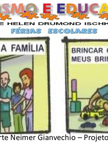 “Victor já não usava fraldas, quando nos mudamos para a casa da minha tia em Sorocoba…de repente, ele começou a evacuar no chão. Foi quando me lembrei do vídeos da Temple Grandin, e voltei a estudar a técnica da “História Social”. Ainda não tinha material em Português, então Neimer e eu criamos uma história pra ele, uma ilustração dele evacuando no chão com um X vermelho em cima”